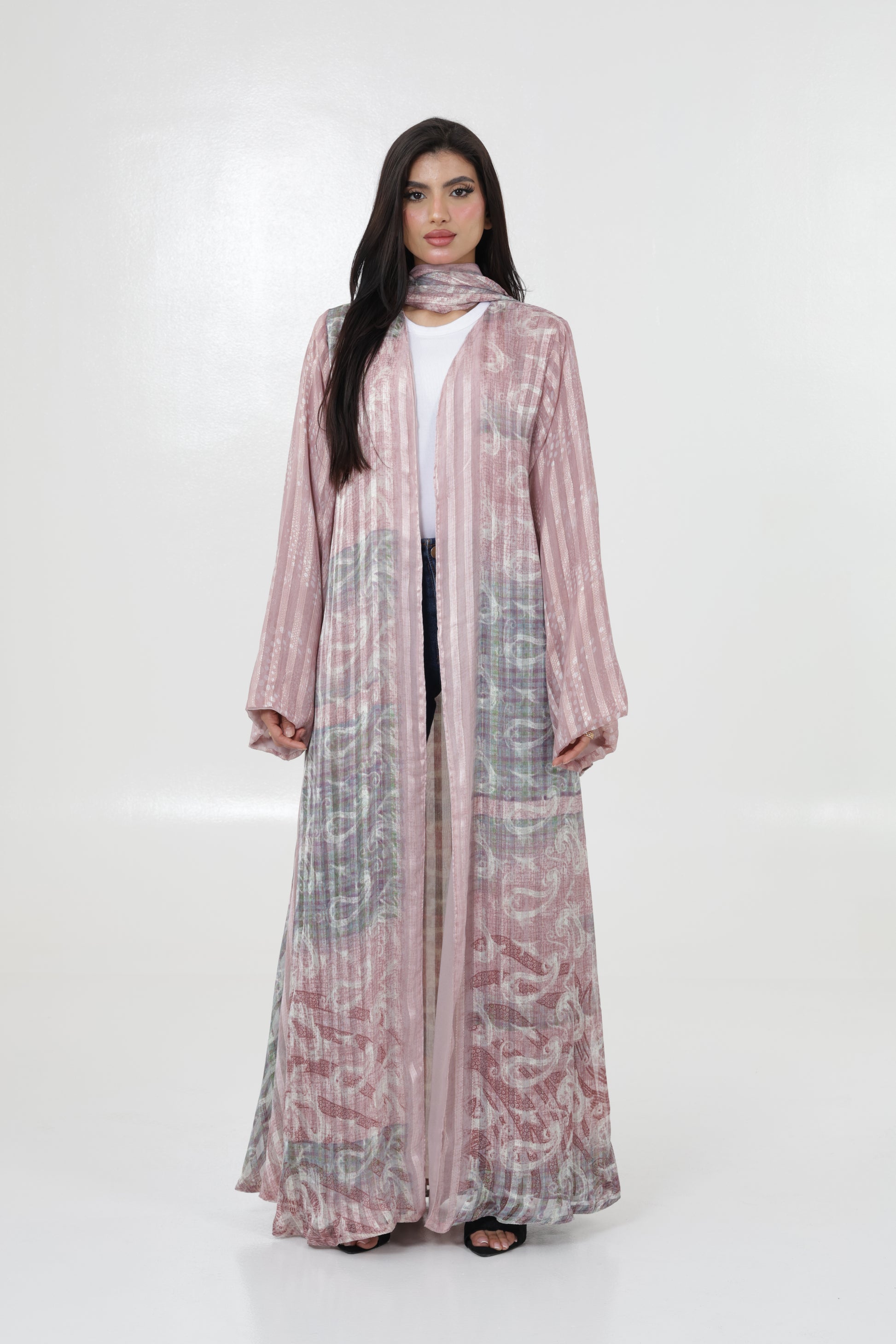 عباية شيفون مبطنة بجودة عالية مع نقشة أنيقة ولمعة خفيفة، مثالية للمناسبات والسهرات لإطلالة فاخرة ومتألقة. خامة الشيفون ناعمة وخفيفة، والبطانة مريحة وتمنح حرية الحركة، مع تفاصيل دقيقة تضيف لمسة من الأناقة والرقي لكل مناسبة.