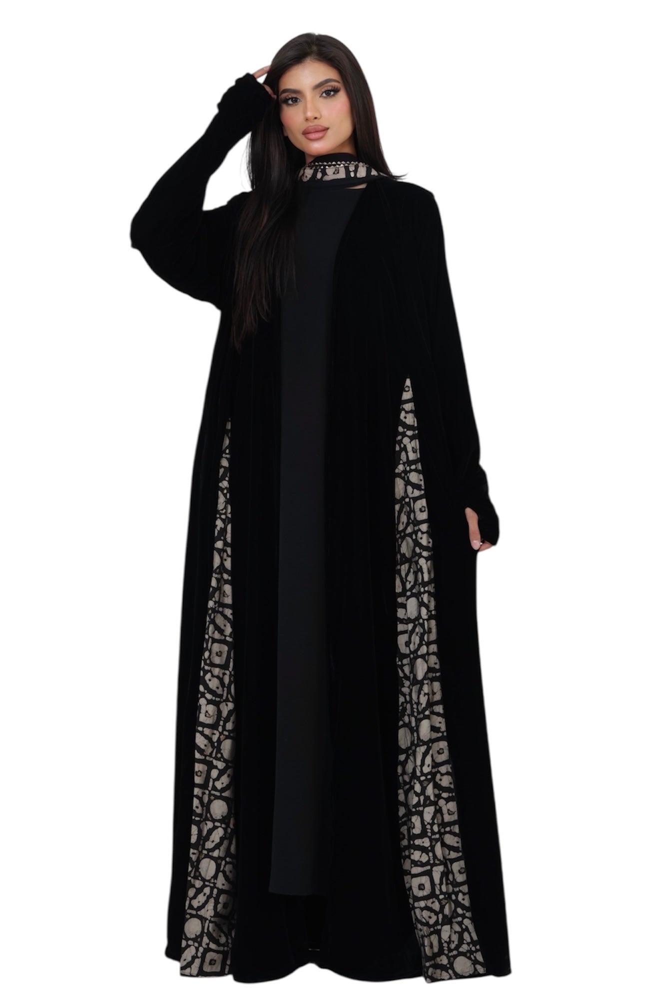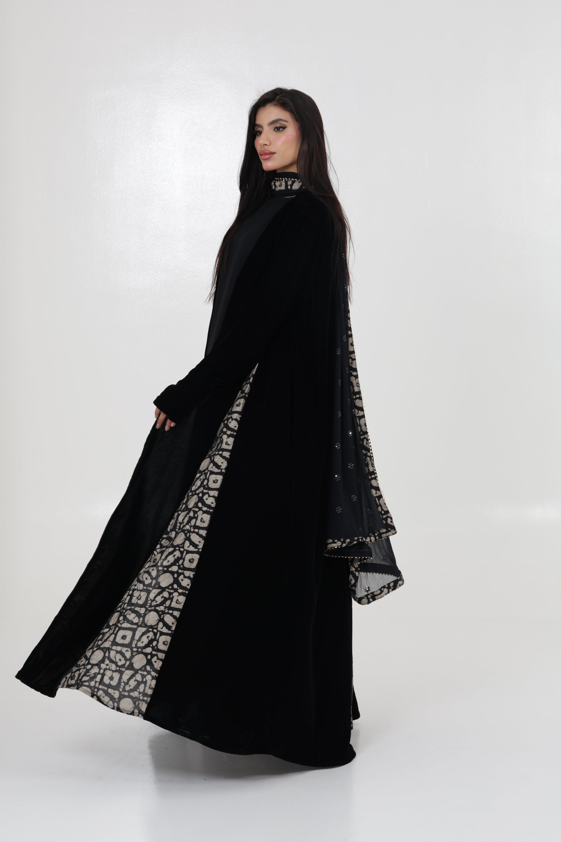 عباية شيفون مبطنة بجودة عالية مع لمسة فاخرة ولمعة خفيفة، مثالية للسهرات والمناسبات الخاصة. خامة ناعمة وخفيفة، والبطانة مريحة لتمنح حرية الحركة وإطلالة أنيقة.