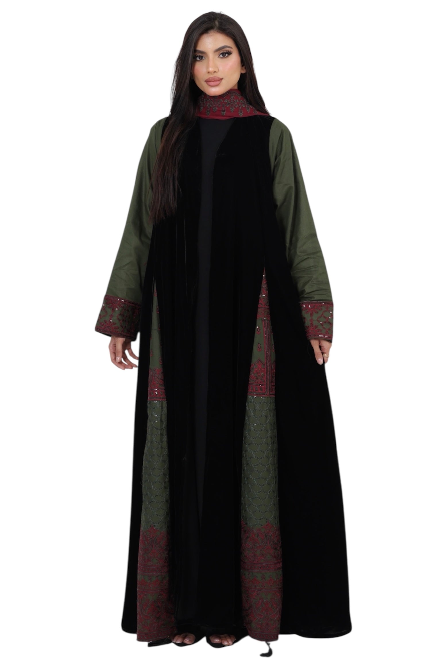 القماش : مخمل اسود ، قطن مطرز