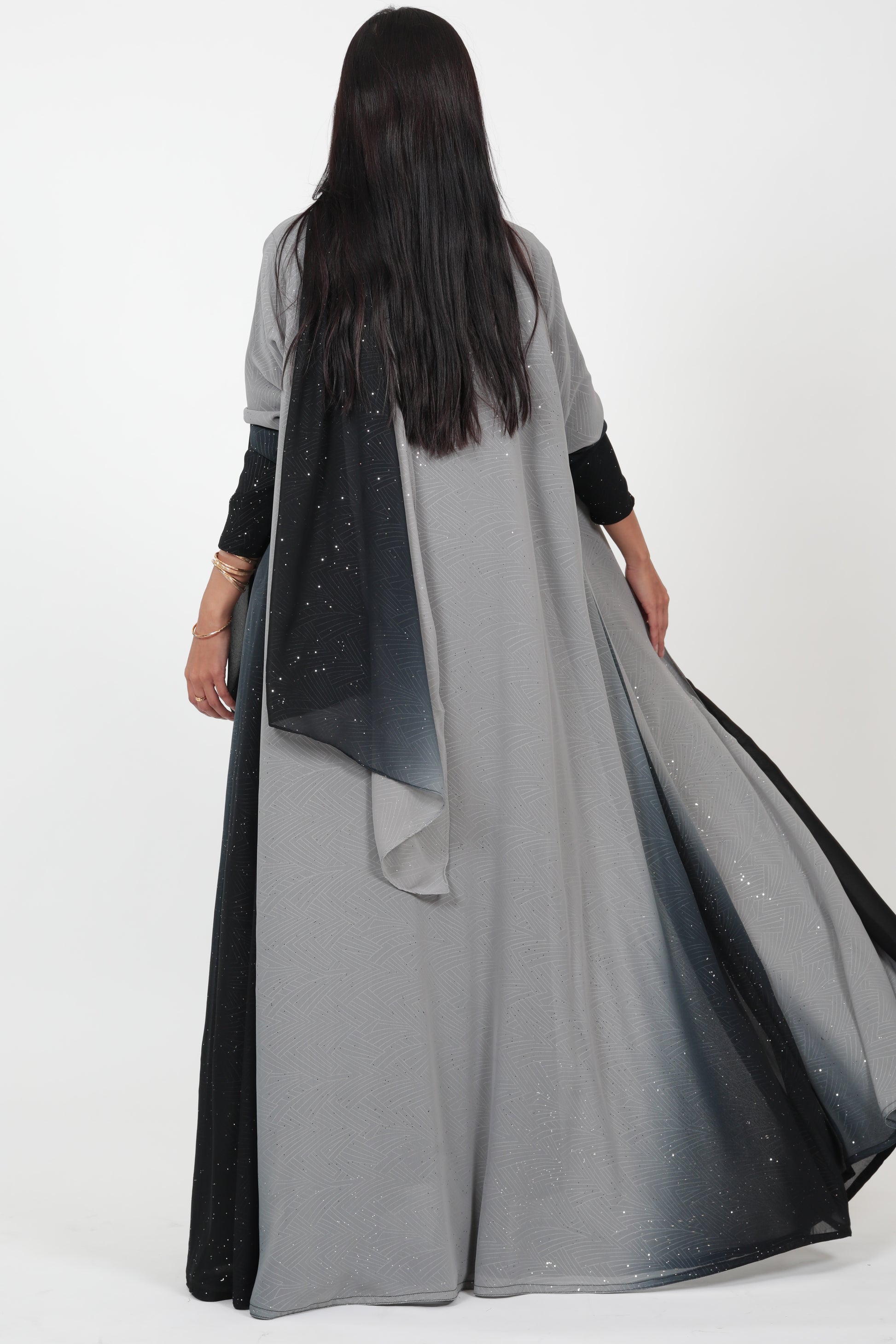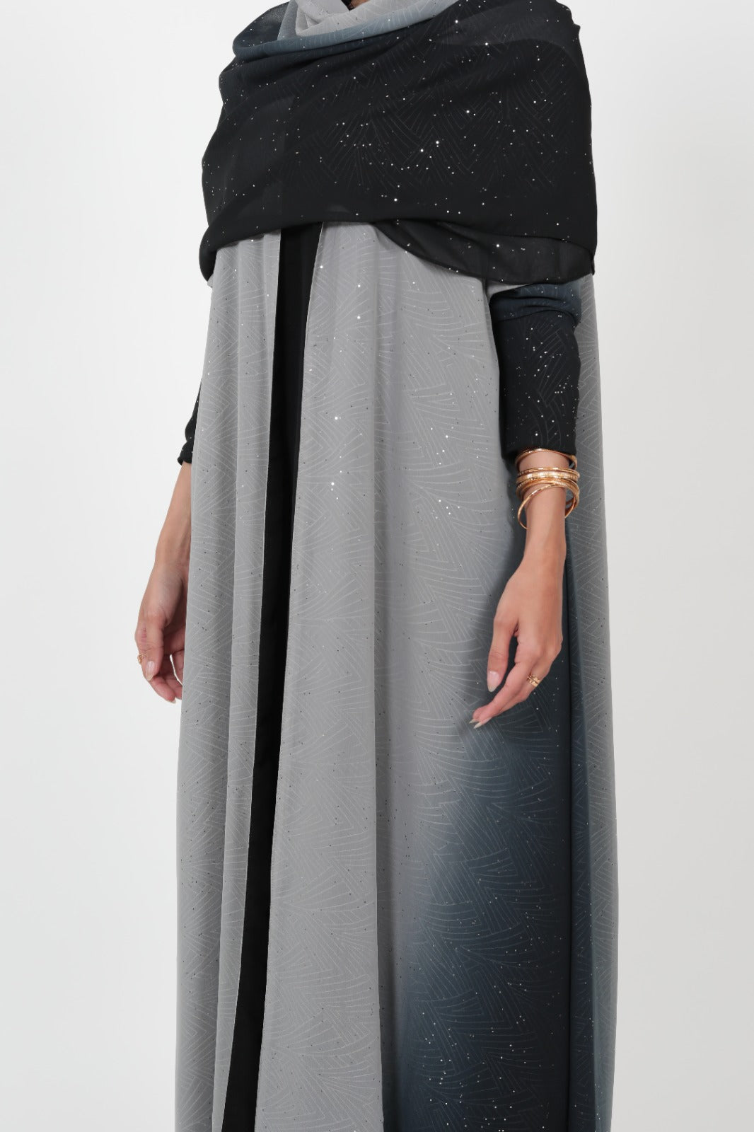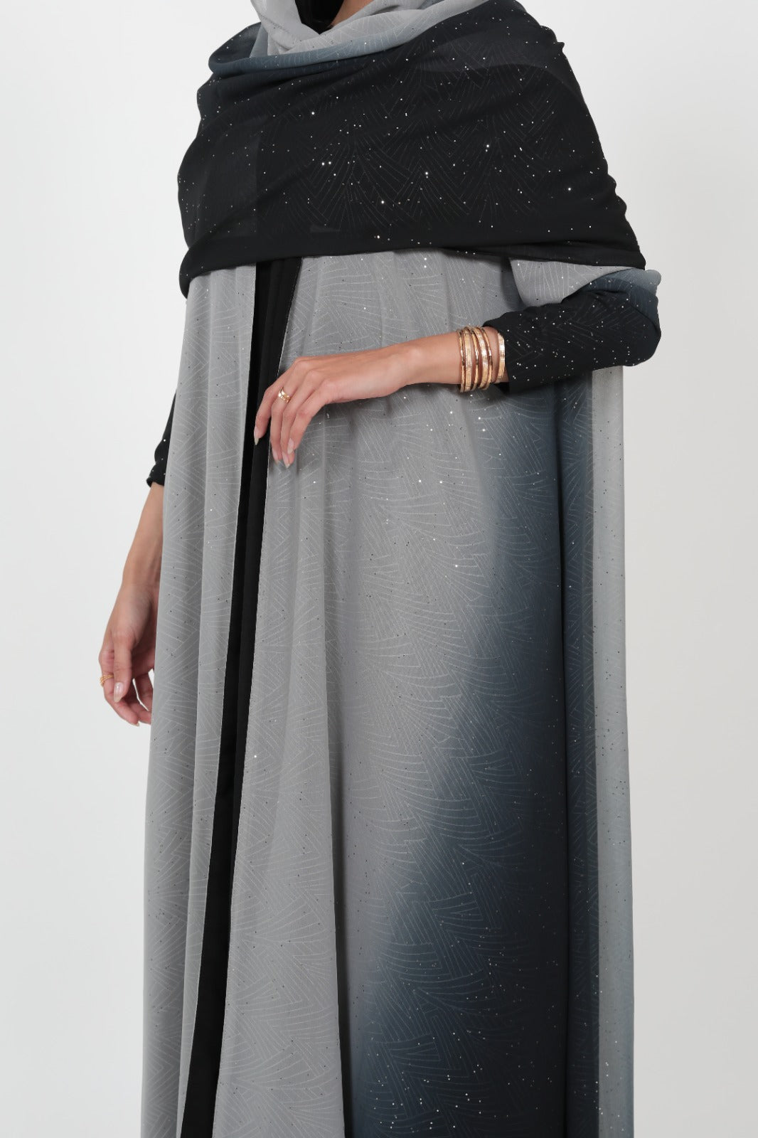 عباية شيفون مبطن بنقشة و لمعه خفيفه تجمع بين النعومة والفخامة لتبرز جمالك في كل وقت.